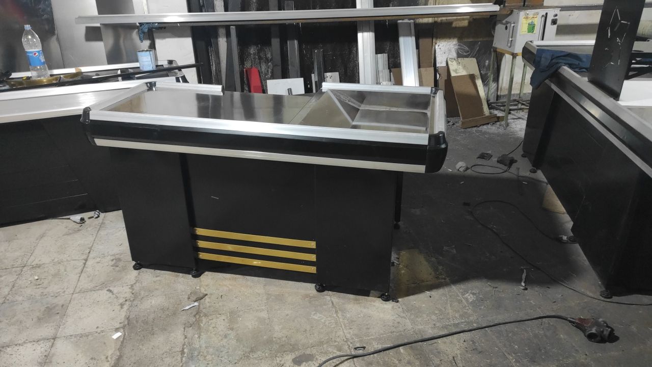 میز صندوق فروشگاهی( چک اوت) موتور دار، دور آلومینیوم آریا طرح B۴۸٬۲۰۰٬۰۰۰ تومان